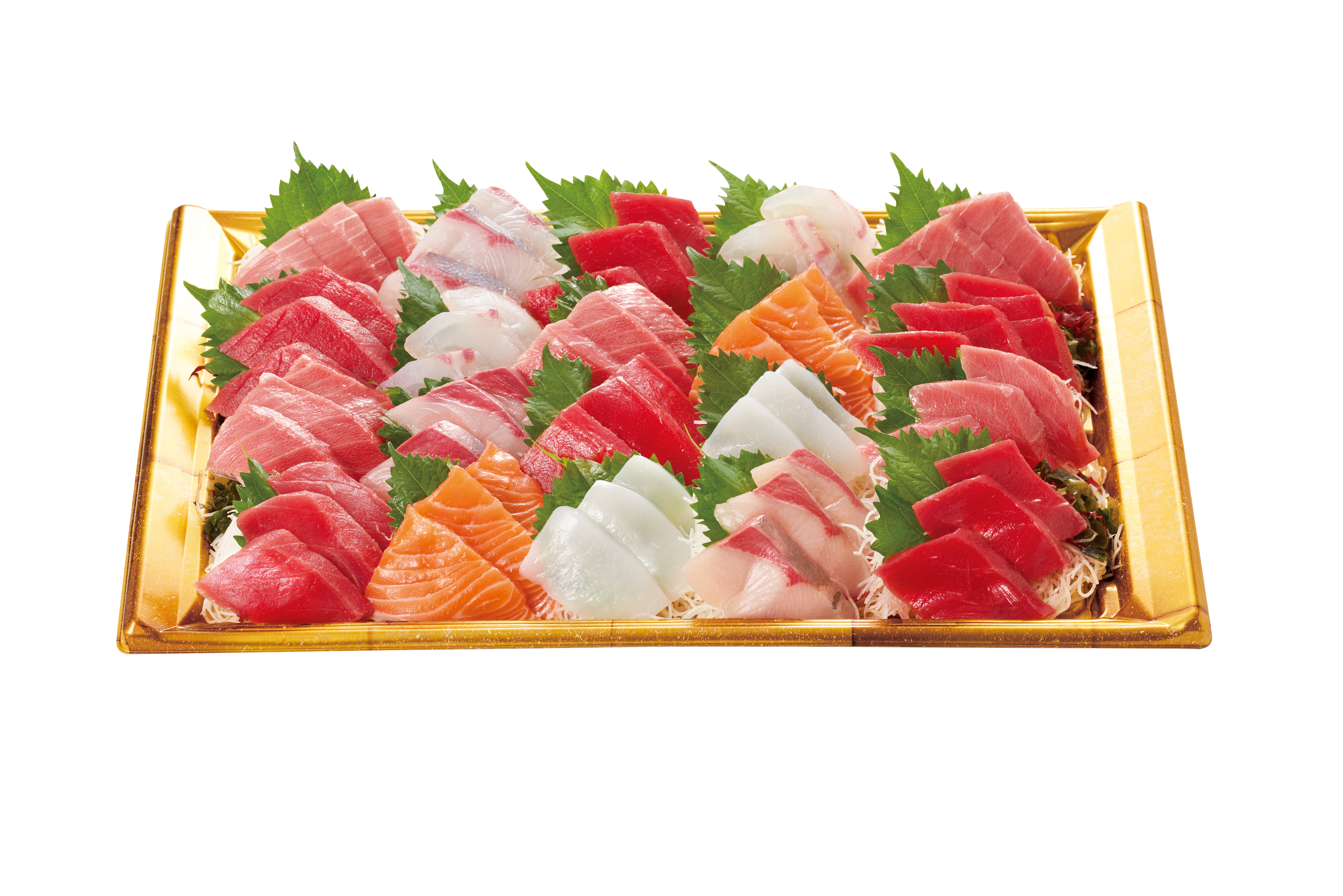 商品内容:本まぐろ中トロ、本まぐろ赤身、まだい、ぶり、そでいか、サーモン等