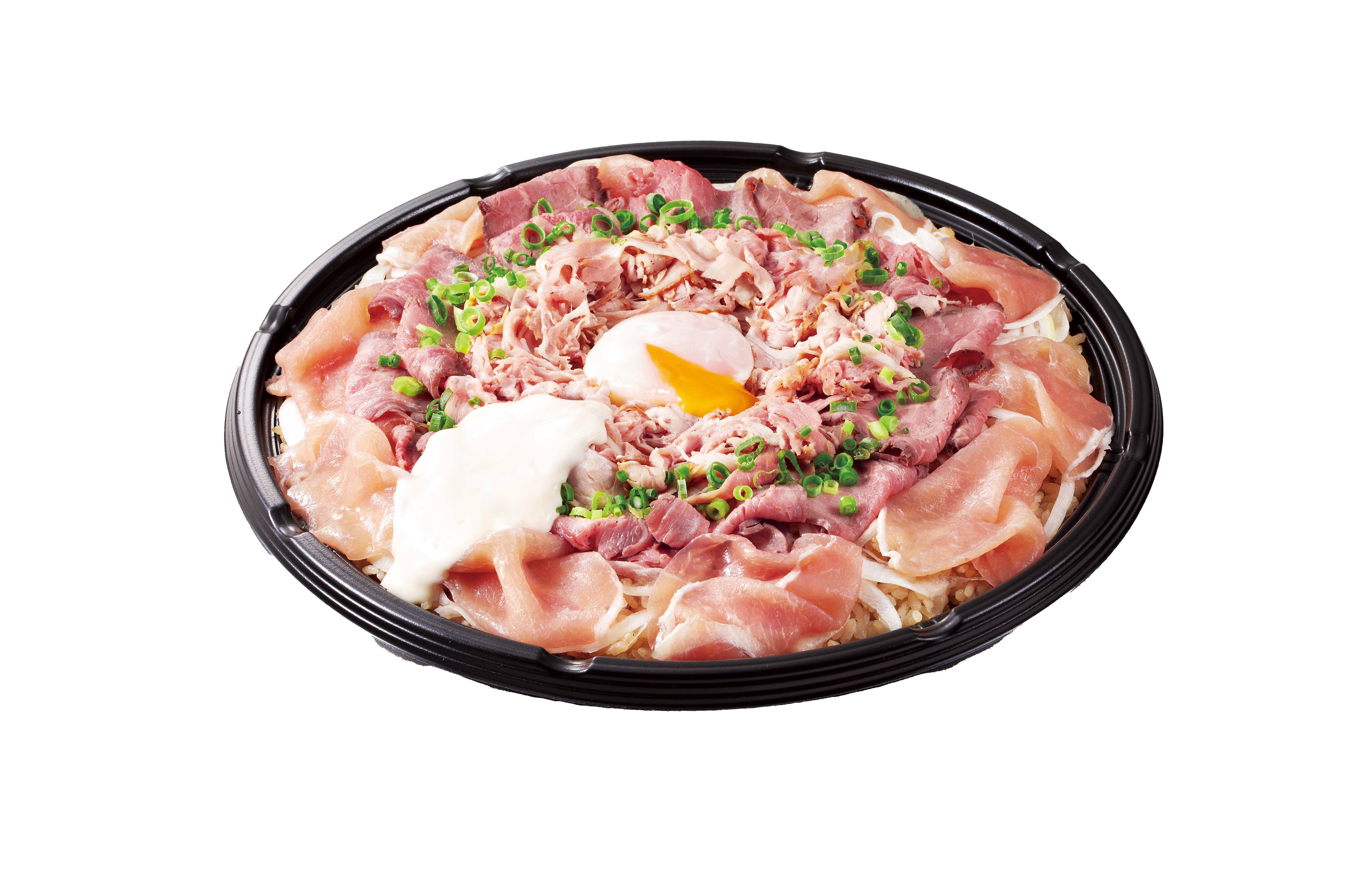 商品内容:炭火焼ローストビーフ、生ハム、ローストポーク、温泉卵、ねぎ、ガーリックライス、オニオンスライス、レモン