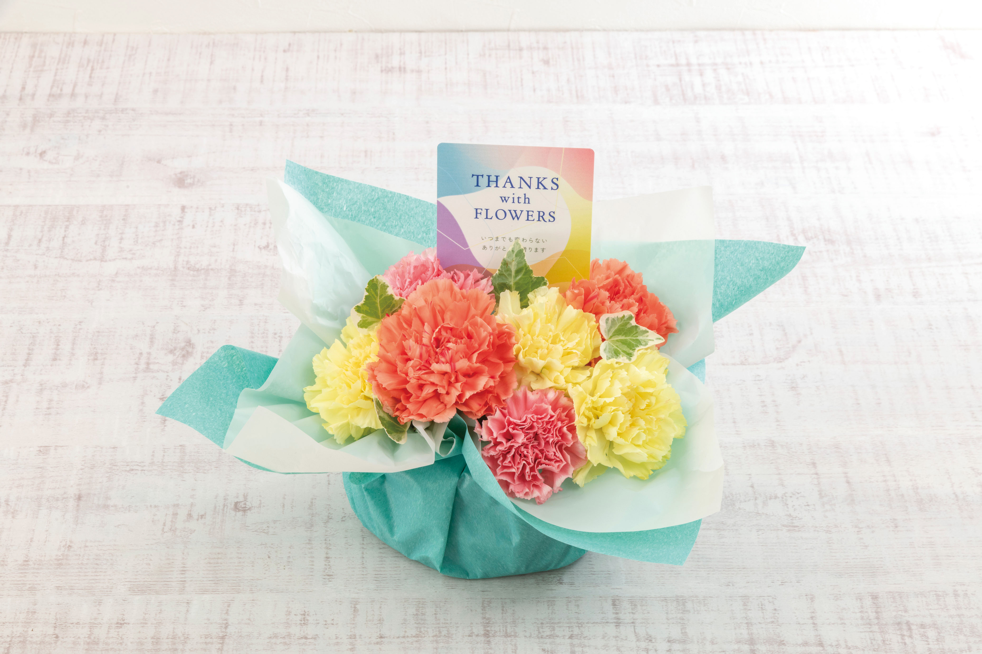 無料でメッセージカードをお付けできます。メッセージカードは1種類となります。