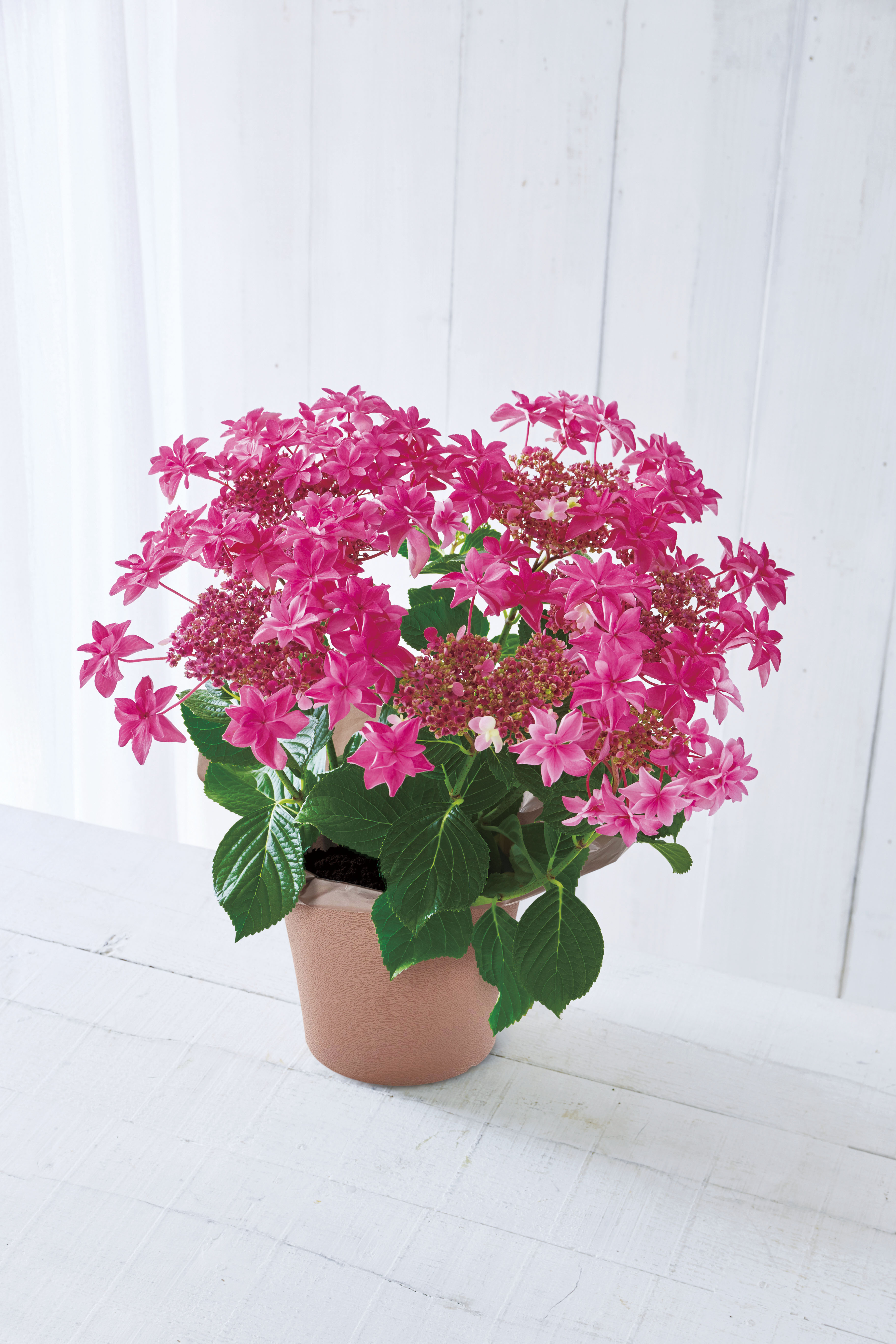 あじさい「桜花乱舞」(5 号)、 鉢カバー(樹脂製)、ラッピング