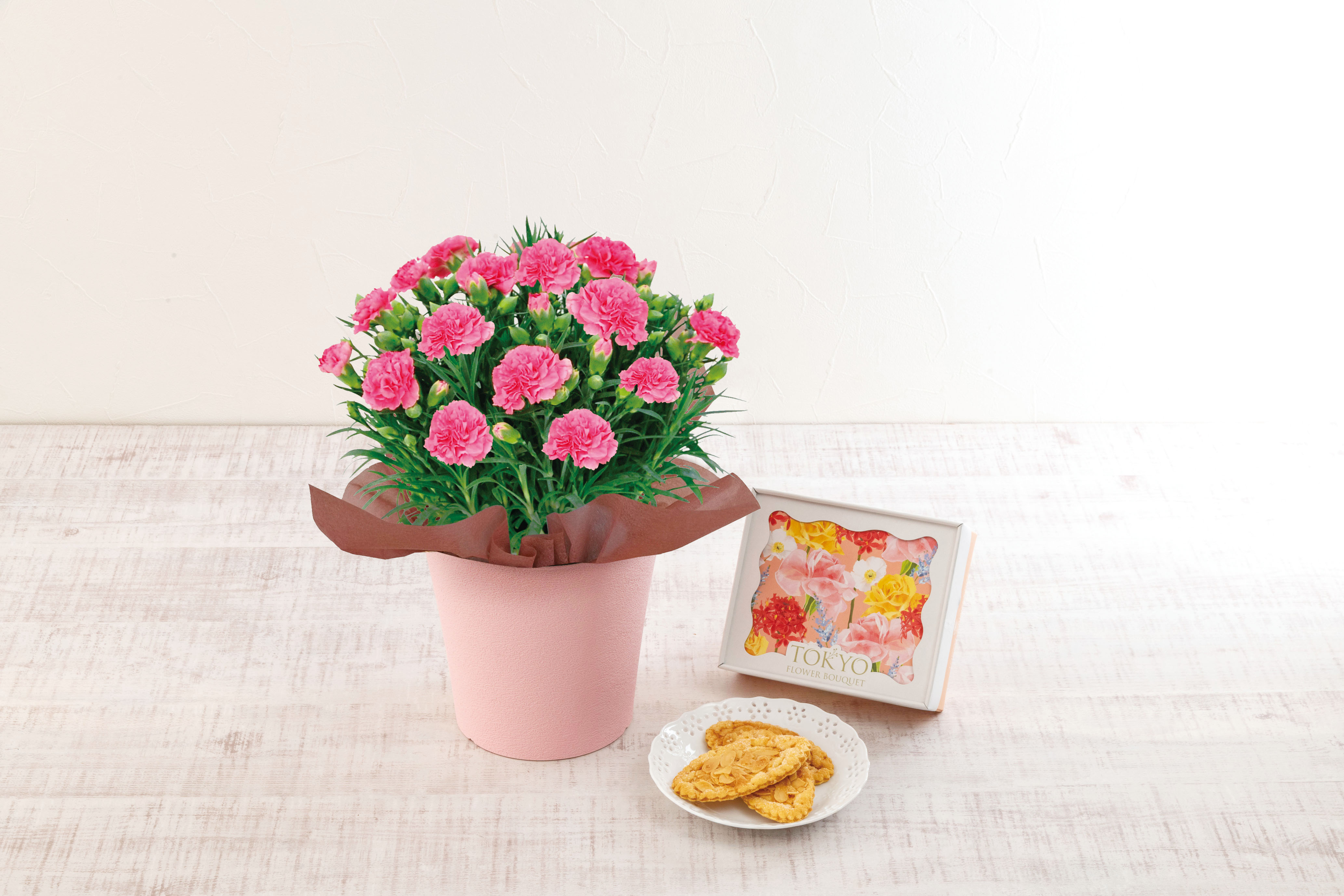 17.カーネーションピンク・東京フラワーブーケ「リーフパイ」セット