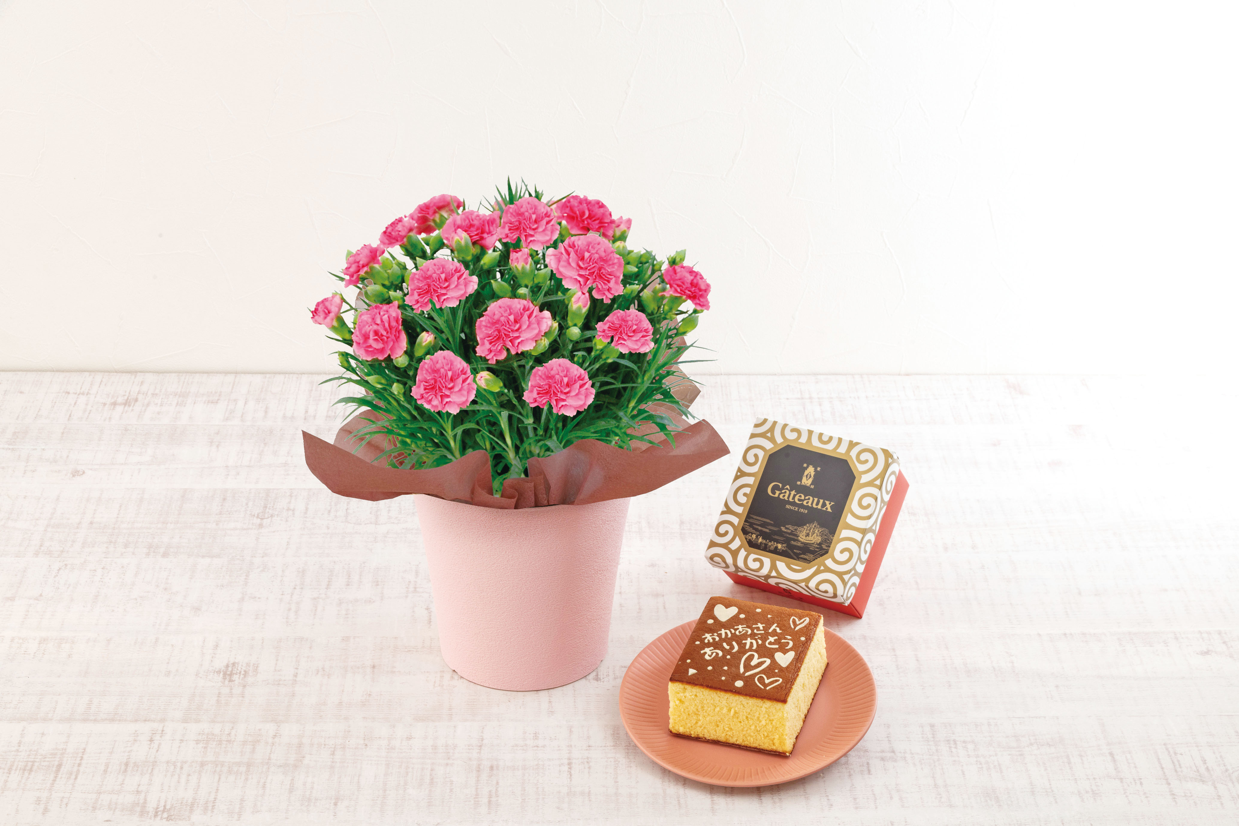 18.カーネーション ピンク・長﨑堂「絵柄入りカステーラ」セット